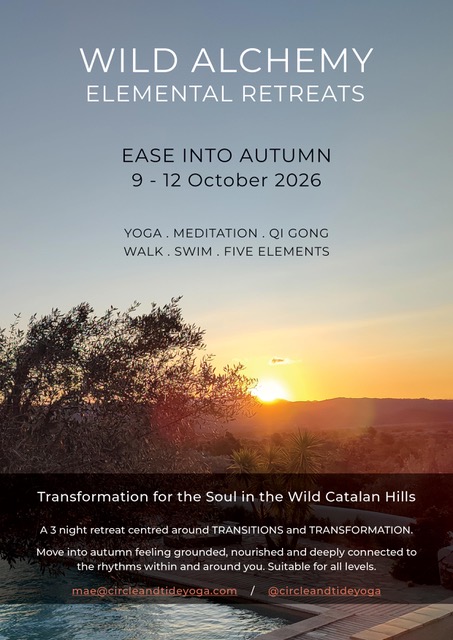 Nomada Retreat Centre 21/13 Ptda Aixorigues, Rasquera, Tarragona, SpainThe ‘Ease into Autumn’ retreat There are only 8 places on this intimate elemental retreat which will have a focus on the transition between late summer and autumn, as well as transformation on a personal level. Scaravelli-inspired and Yin Yoga practices alongside Five Element Theory and Chinese Medicine wisdom will form the base of this